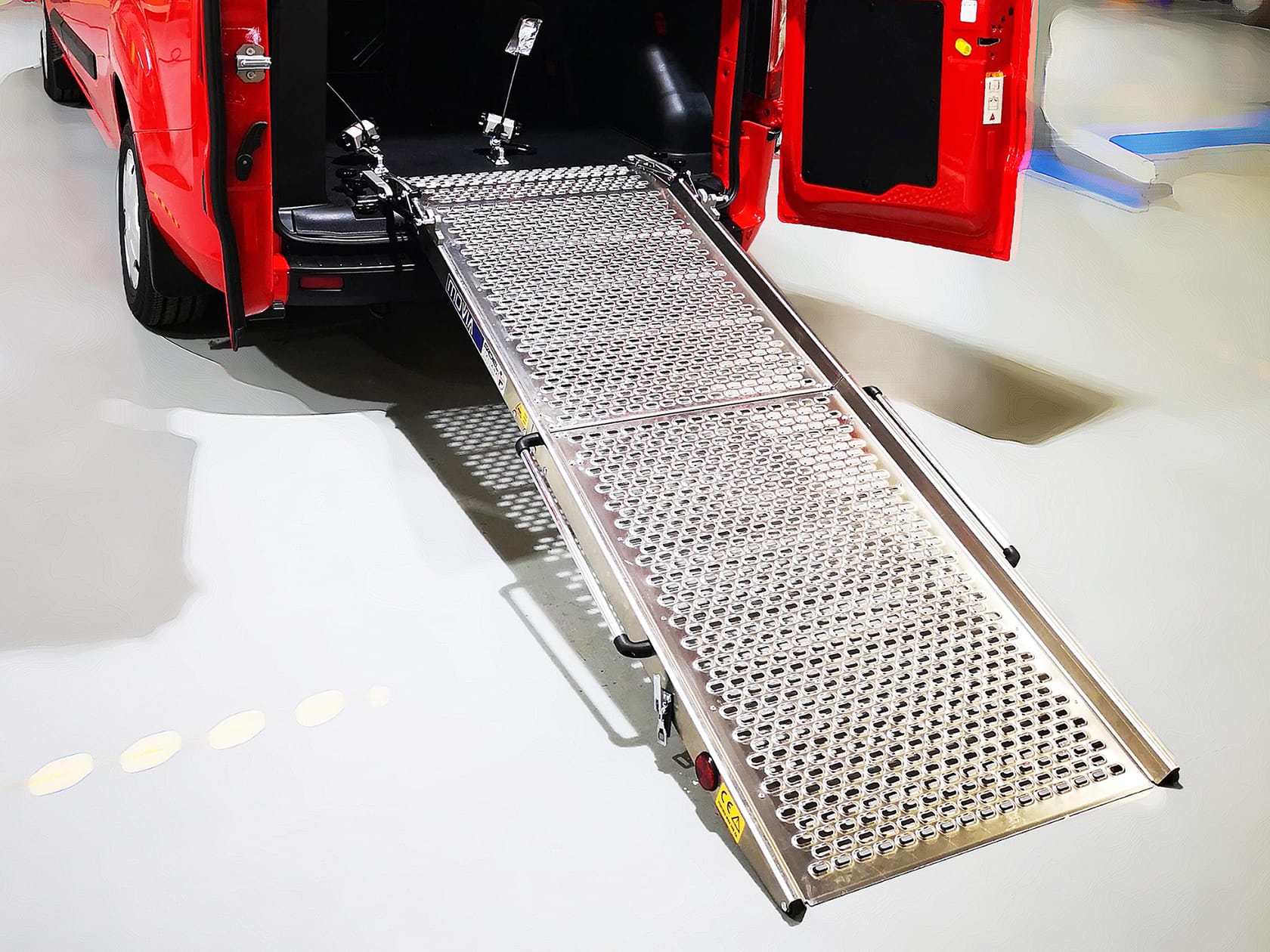 Facilita a las personas con discapacidad el acceso al vehículo y también puede ser utilizado para la carga / descarga de los otros medios y equipos tales como carros para servicios de catering, hospitales, servicios de audio / luces , máquinas expendedoras.